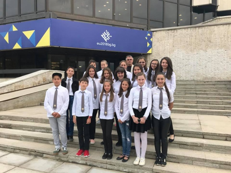 Така беше и на 21 май. Трябваше да посетим НДК – във връзка с българското европредседателство. Ученици от V и VI клас, г-жа Кюнчарска и г-н Попов, насищахме атмосферата в микробуса с „евроелементи“.