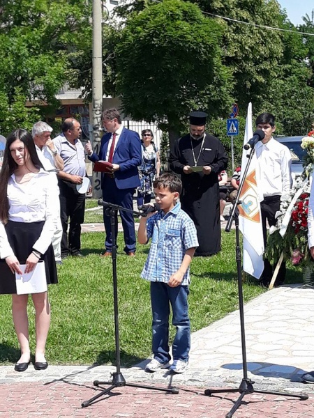 Участие на ученици от ОУ "Митрополит Авксентий Велешки" в празничното отбелязване на 2 юни - Ден на Ботев и на загиналите за свободата и независимостта на България.