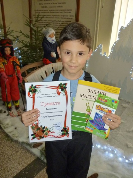 Трето място в Коледното математическо състезание, проведено в ПГ "Константин Фотинов", заслужи Теодор Стоянов от II "а" клас. Поздравления!