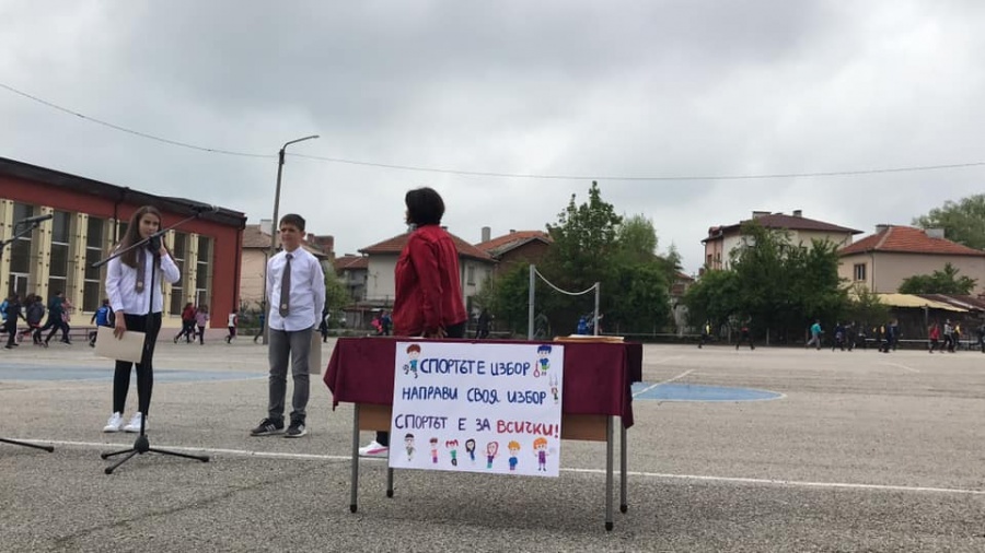 17.05.2019 17 май - Ден на българския спорт На 17 май празникът по повод Деня на българския спорт стартира в ОУ "Митрополит Авксентий Велешки" с общоучилищен крос, в който се включиха всички ученици с техните преподаватели и беше поведен от директора на училището Ирена Коцева и учителят по физкултура Васил Аджиков. Водещите Латиана и Божидар запознаха публиката с повече информация за празника и обобщиха спортните успехи на учениците от училището ни в различните области - баскетбол, футбол, волейбол, бадминтон, лека атлетика, БДП, както и в състезанията "Бързи, смели, ловки". Всички спортисти бяха наградени, а заслужени грамоти получиха и участниците в ТФ "Самодивче", които съвсем наскоро се завърнаха с трета награда от Пето фолклорно надиграване "Я тропнете, да тропнем", а през цялата учебна година многократно участваха в училищни и градски мероприятия.