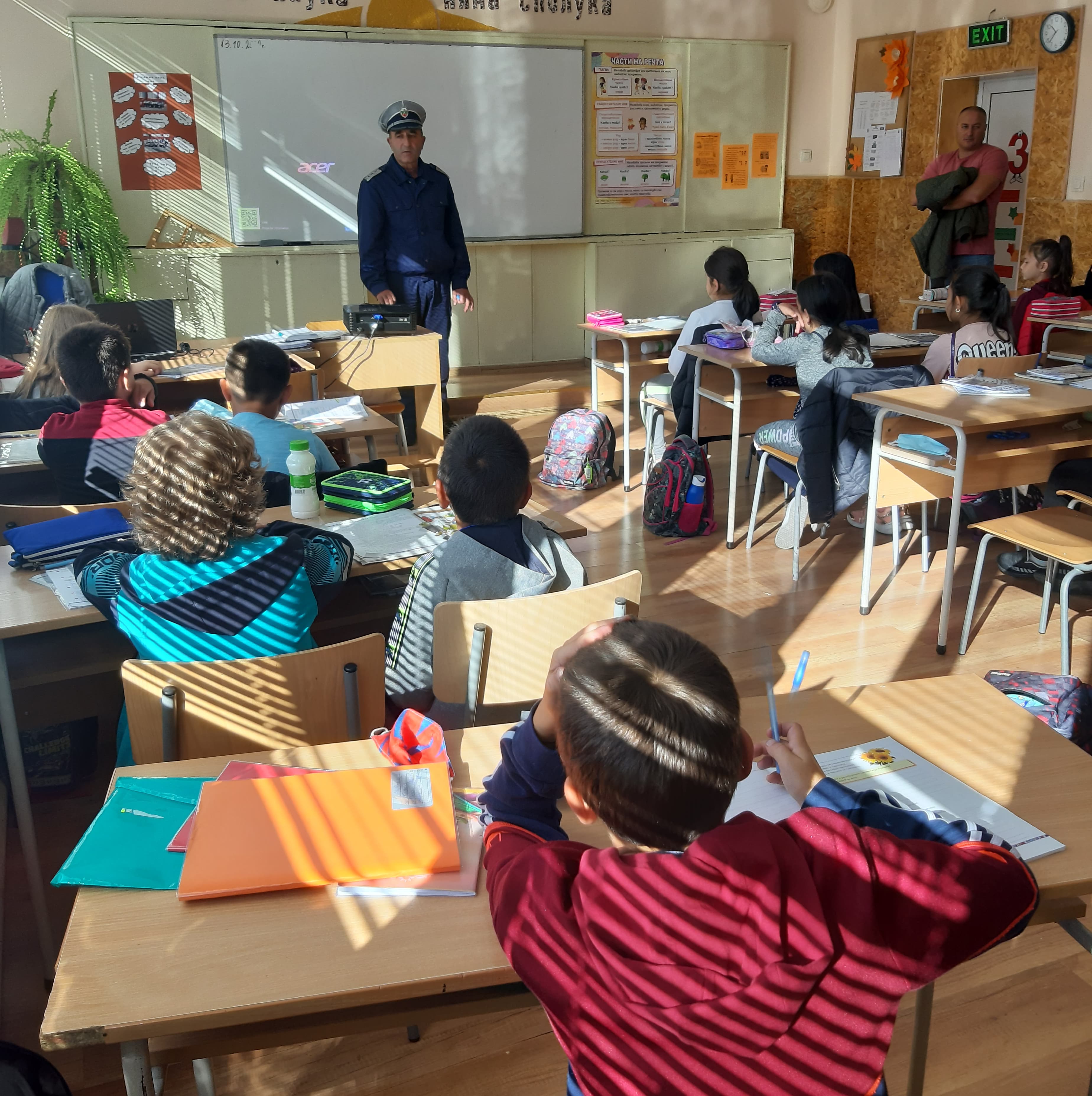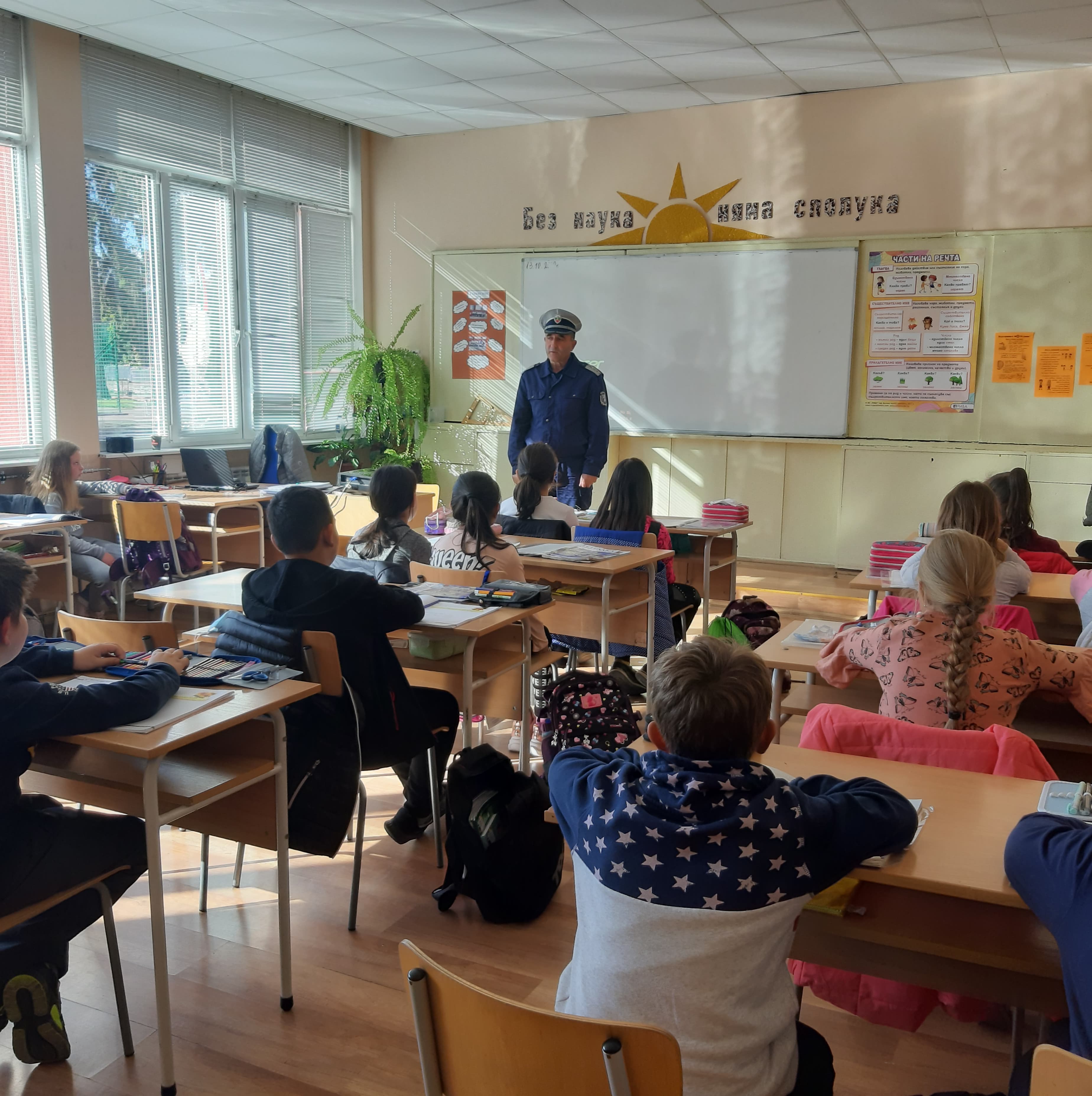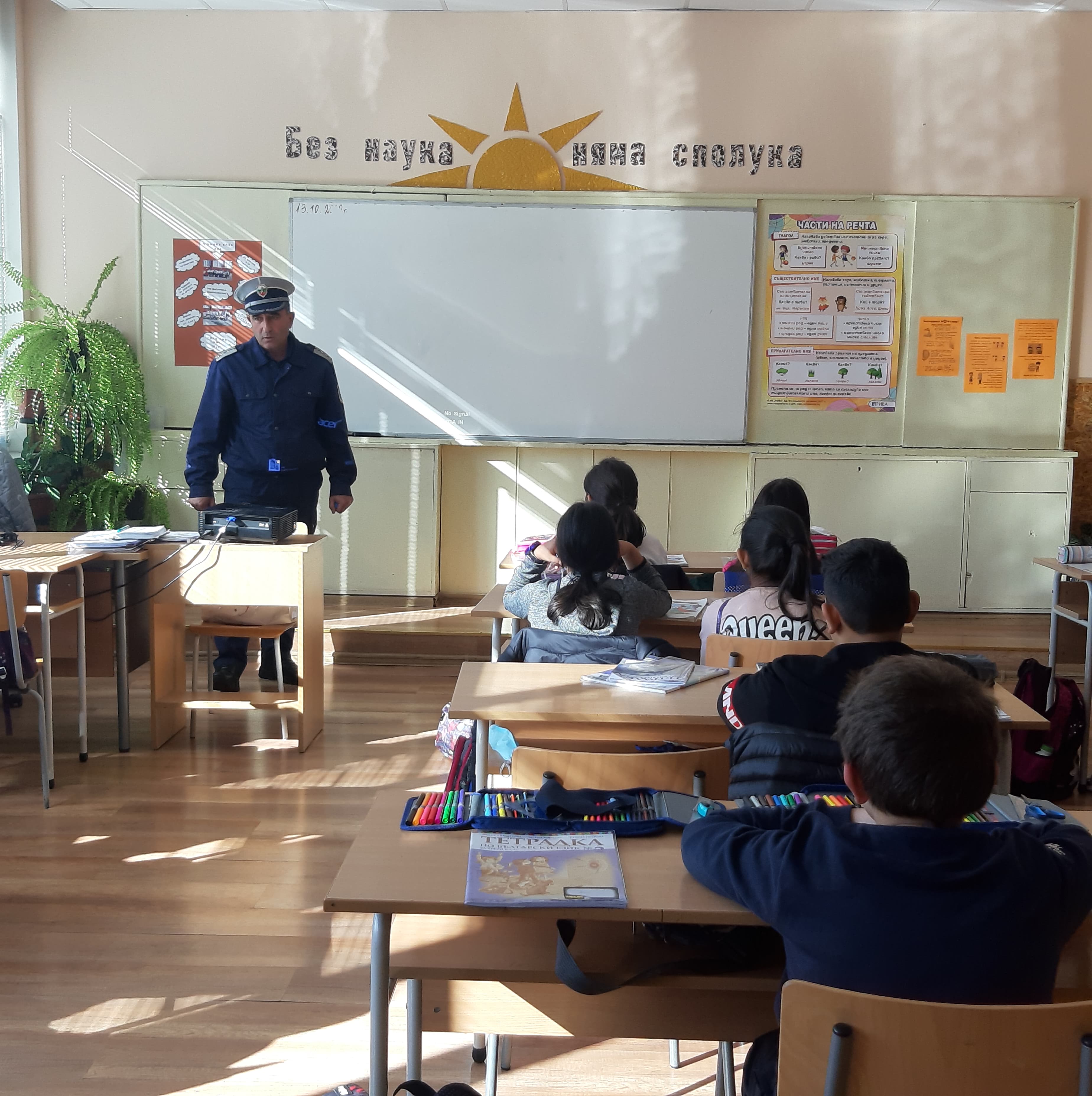 Учениците с интерес изслушаха указанията за безопасното движение по пътищата. Г-н Елин ги запозна с основните правила за движение по пътя, правилата за пресичане, като им препоръча да бъдат особено внимателни при движението си по улиците, а когато им се налага да пресичат уличното платно или да се движат с велосипед, да бъдат съсредоточени и да спазват правилата.