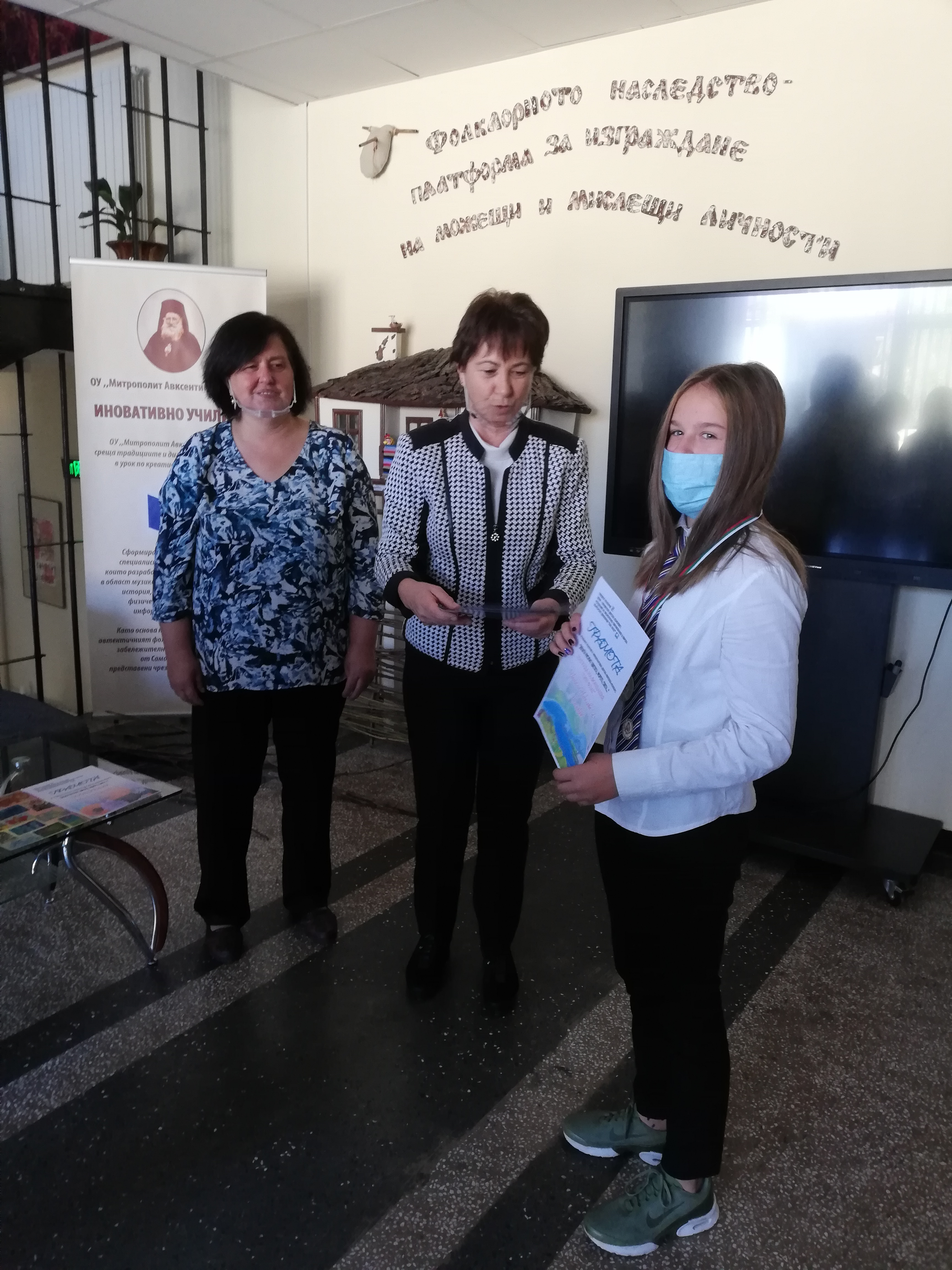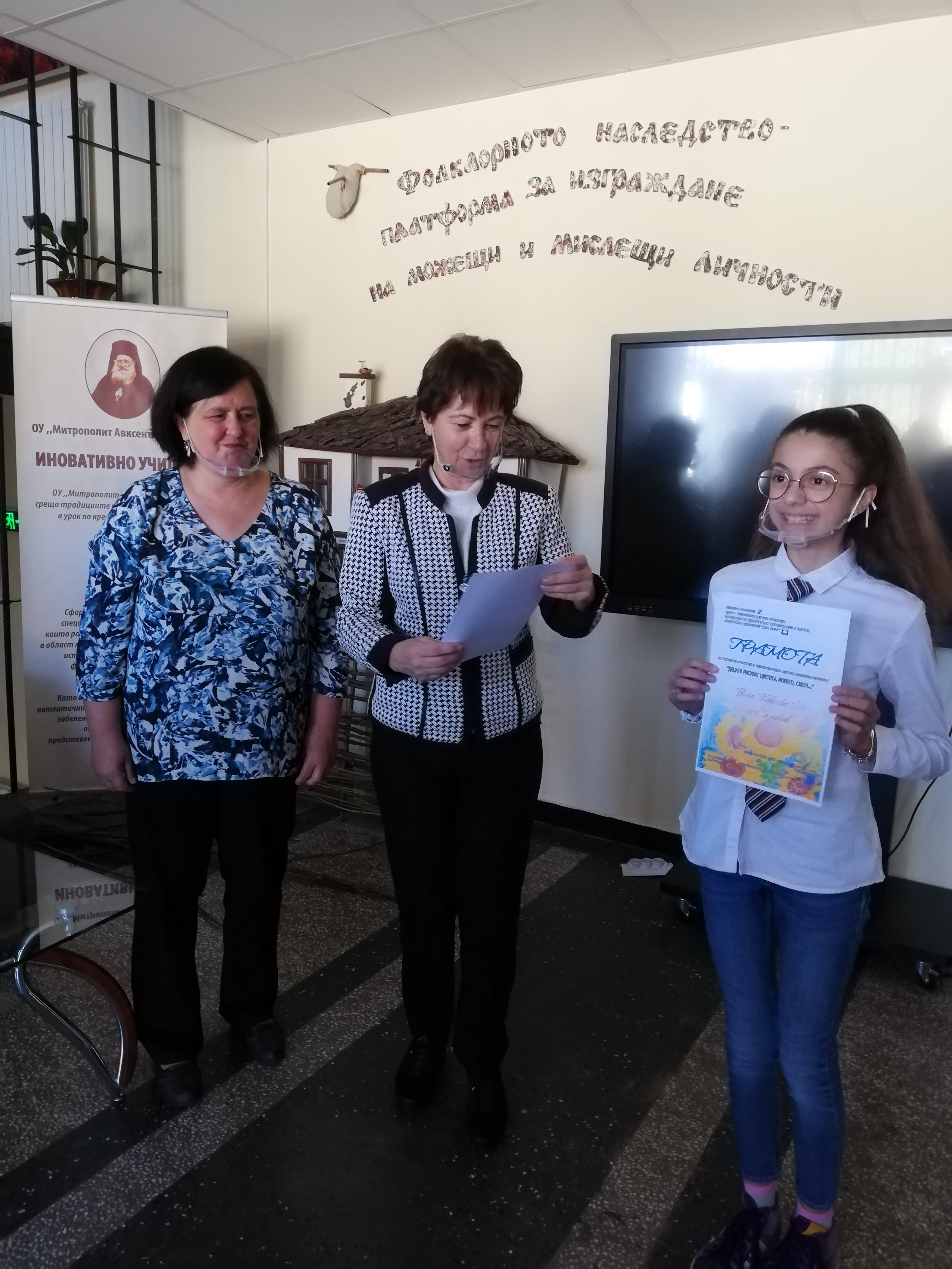Поощрителна награда получи Марина Андонова от 6 б клас, а грамоти за отлично представяне получиха: Михаела Бързанова от 7а клас, Латиана Стоянова от 7б клас, Ивана Стефанова от 7б клас, Ивана Дюлгерова от 7а клас, Евгения Попова от 7а клас, Вяра Ковачка от 7б клас, Венета Янакиева от 7б клас, Ангелина Вукадинова от 6 б клас, Александър Стефанов от 7б клас и Александър Вучов от 6б клас. Преподавател по изобразително изкуство на наградените ученици е г-жа Елена Гривева.