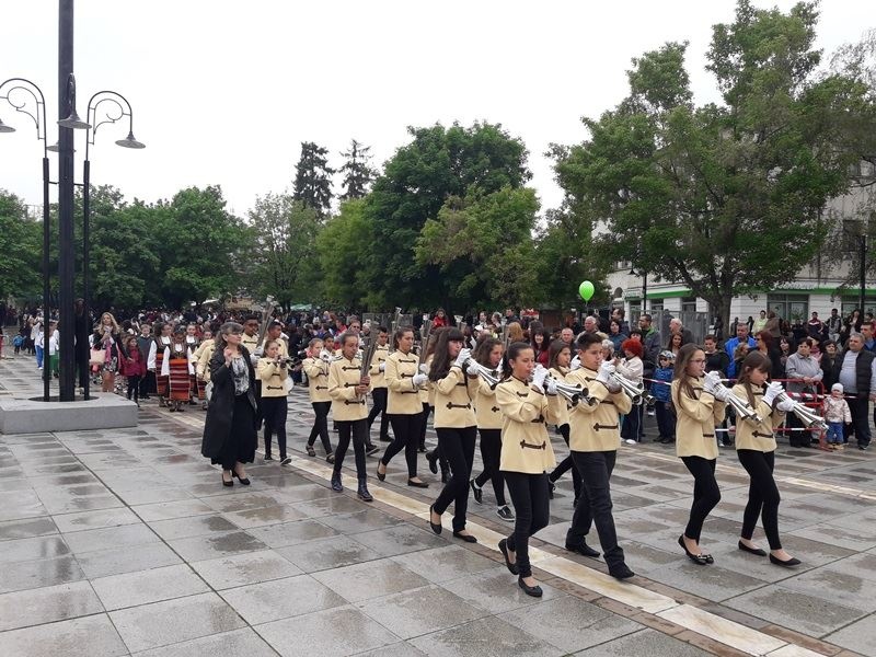 24.05.2017 Шествие и концерт за 24 май Учениците и учителите на ОУ „Митрополит Авксентий Велешки” почетоха празнично 24 май – Ден на българската просвета и култура и на славянската писменост. След поднасянето на цветя пред паметната плоча на патрона на училището потеглиха с шествие към централния площад „Захарий Зограф”. Учениците в шествието бяха разделени на блокове, в които се отличаваха фанфарите, вокалната група, ученици със спортни постижения, медали от различни състезания, участниците в танцова формация „Самодивче” и други. Празничната програма на площада включваше награждаване на учители и празничен концерт.