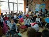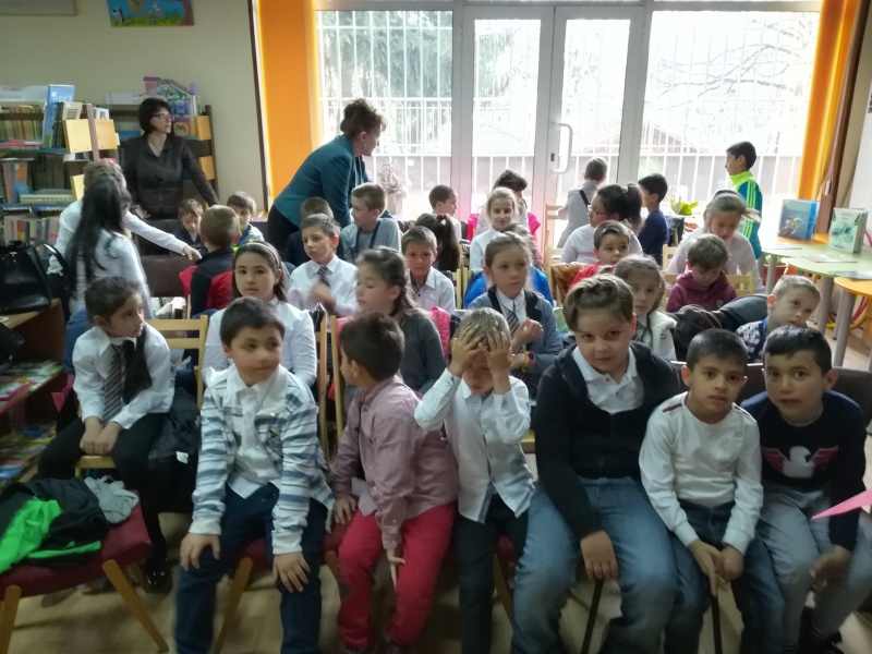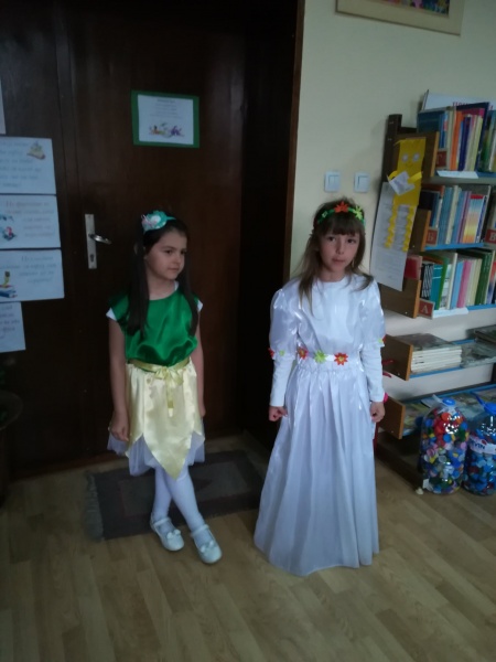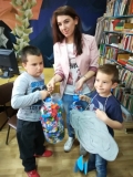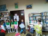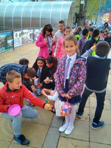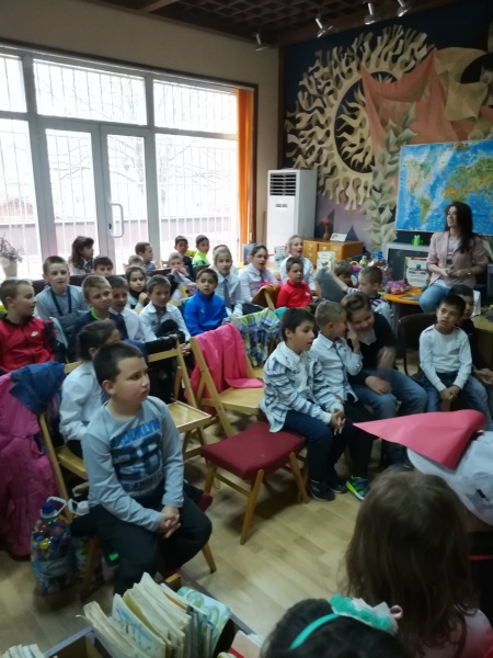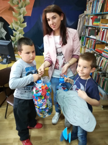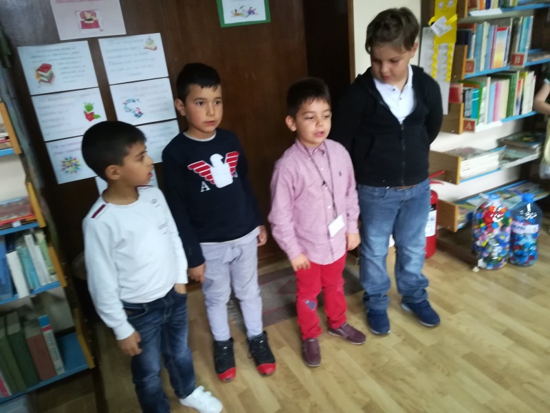 23.04.2018 "Капачки за бъдеще" и децата от ПГ и II"в" клас По случай Деня на Земята, децата от Подготвителна група с учител Евелина Николова и учениците от 2"в клас с класен ръководител Даниела Иванова, посетиха Общинската библиотека "Паисий Хилендарски", където представиха кратка програма, посветена на природата и предадоха събраните от тях "Капачки за бъдеще".