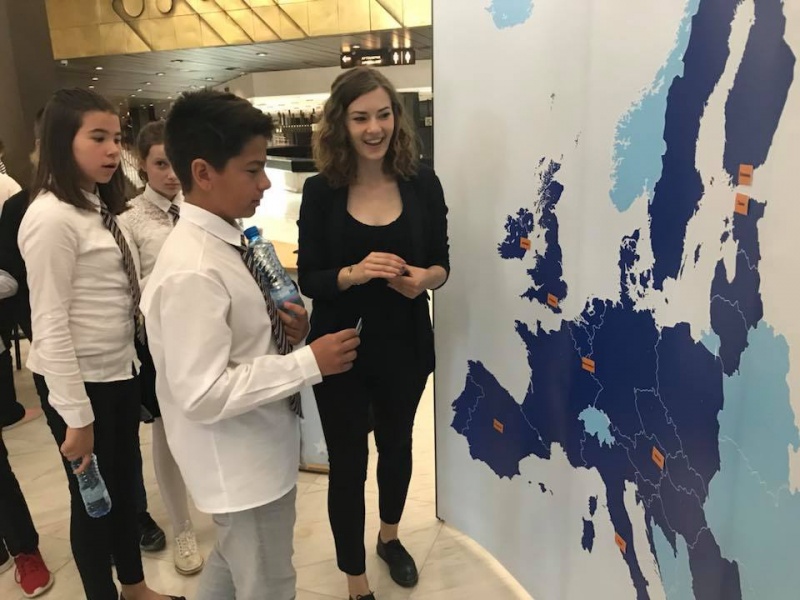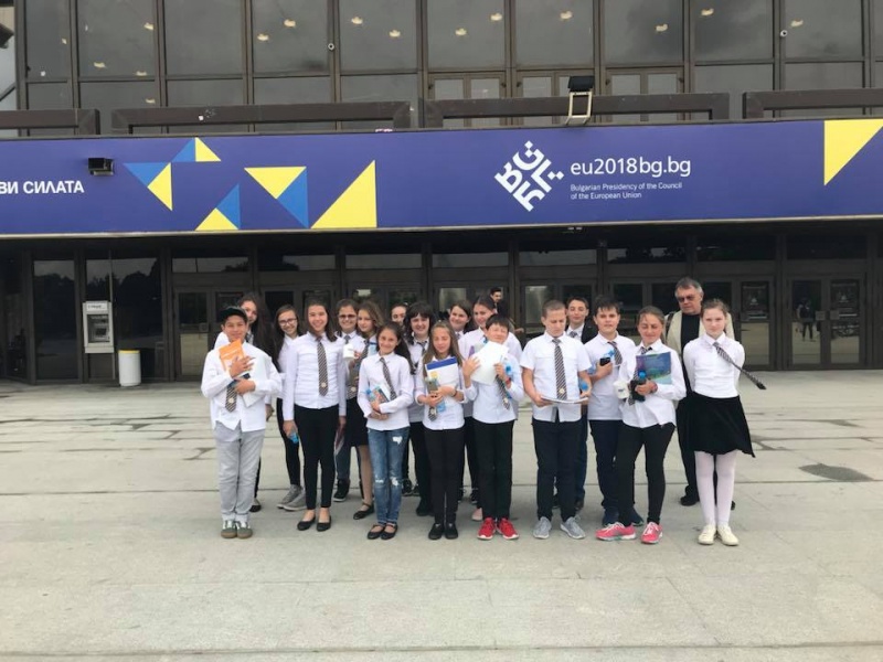 Така беше и на 21 май. Трябваше да посетим НДК – във връзка с българското европредседателство. Ученици от V и VI клас, г-жа Кюнчарска и г-н Попов, насищахме атмосферата в микробуса с „евроелементи“.