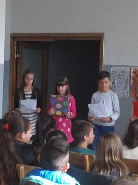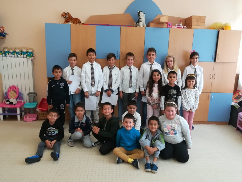 На 22.10.2018 г. ученици от IV "г" клас с учител Ваня Терзийска прочетоха на децата от Подготвителна група приказката "Човекът, змията и лисицата". Отново пред най-малките, ученици от V клас с учител Райко Попов изпълниха приказката "Неволята учи".