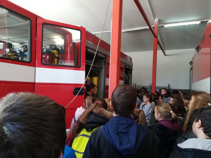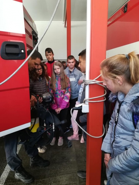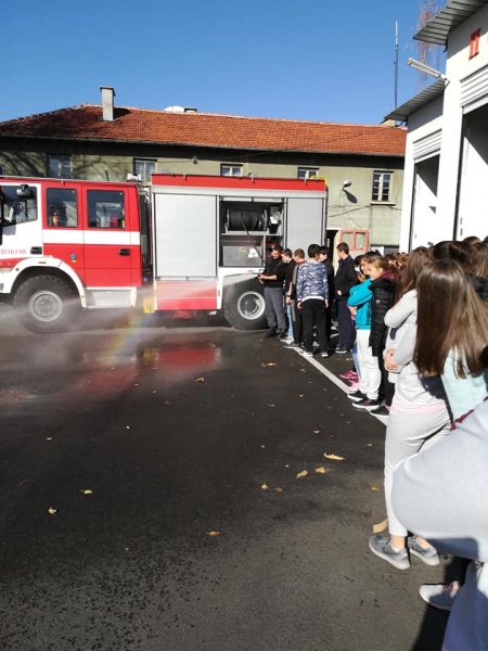 08.11.2018 Посещение на седмокласници в Противопожарна служба - гр. Самоков Учениците от VII клас посетиха Противопожарна служба - гр. Самоков във връзка с обучение на тема "Вещества и материали, предизвикващи пожар". Практическото занятие беше интересно и полезно за учениците, които активно се включиха в демонстрациите. Благодарим за любезното съдействие на дежурния екип.