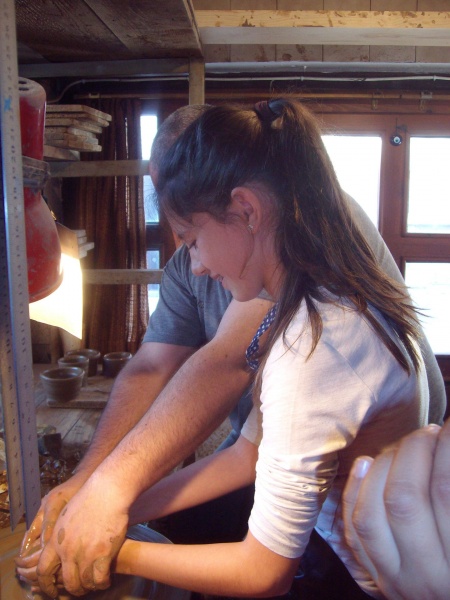 10.11.2018 Запознаване на ученици с грънчарството по проект "Плетеница" На 10.11.2018 г. ученици от ОУ "Митрополит Авксентий Велешки", работещи по проект „Плетеница“, финансиран от ЦОИДУЕМ, посетиха грънчарската работилница на семейство Савови в нашия град.Техни ръководители са Елена Гривева и Славея Петрунова. Там под вещото ръководство на майстор Стоян Савов групите имаха възможност сами да изработят различни глинени съдове. Тези съдове ще се изпекат в автентична грънчарска пещ. После ще бъдат украсени по идейни проекти на учениците. От изработените съдове ще бъде организирана изложба във фоайето на училището. Децата разгледаха емблематични културни забележителности в центъра на Самоков: Голямата чешма, Чадър чешма, Байракли джамия. Целта е развитие на творческия потенциал, като се запази културната идентичност и се създаде възможност за осъзнаване и уважаване на норми, ценности и ритуали на поведение.