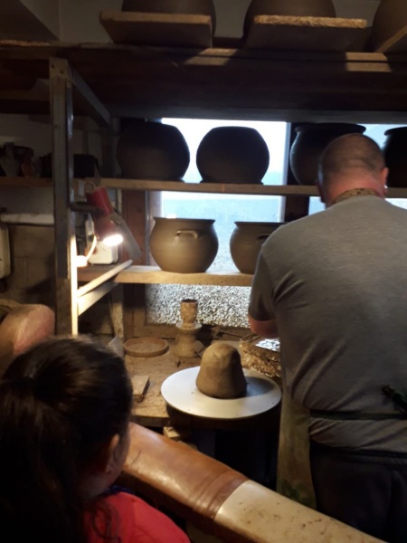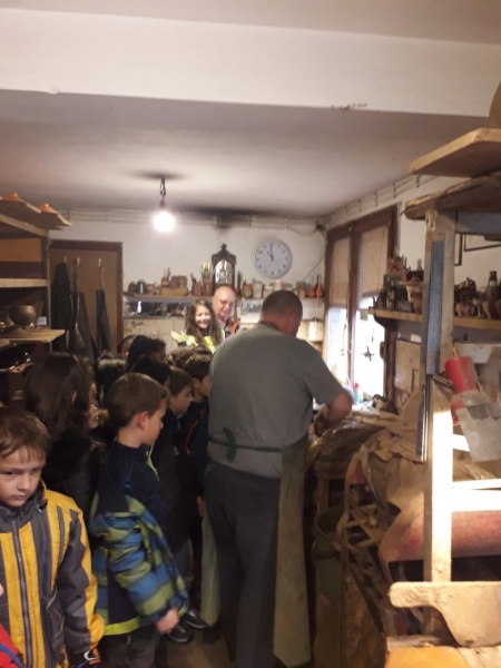 26.12.2018 Второкласници на посещение в грънчарската работилница на семейство Савови Във връзка с темата "Стари самоковски занаяти" по ИУЧ Родолюбие учениците от II "а" и "б" клас посетиха грънчарската работилница на сем. Савови. Там видяха пътя на керамичните изделия от глината до готовия продукт. Грънчарят Стоян Савов им показа как се работи и на грънчарско колело.