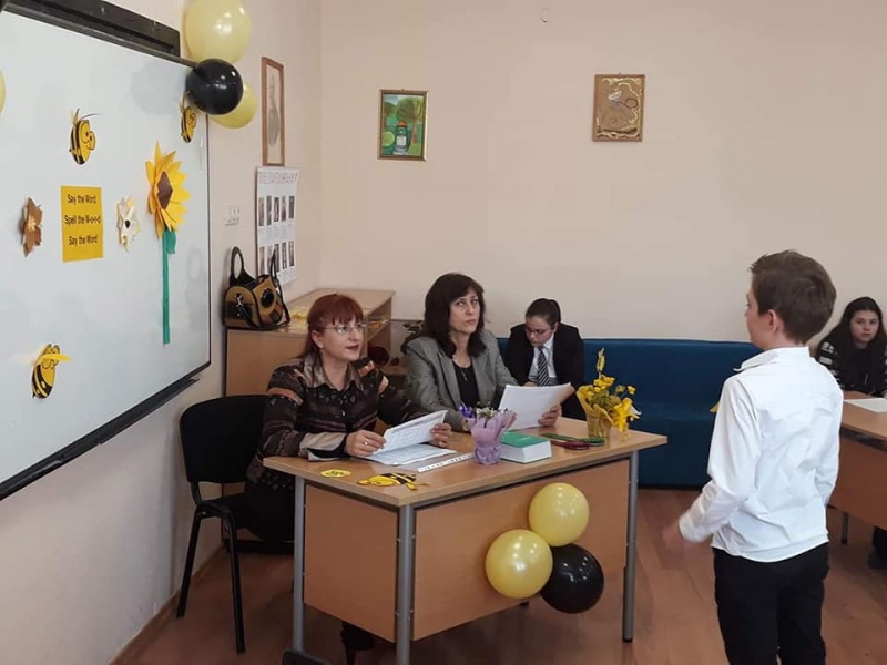 06.03.2019 Bulgarian National English Spelling Bee Днес, 06.03.2019 г., се проведе Националното състезание по правопис на английски език - Bulgarian National English Spelling Bee. В надпреварата се включиха 30 ученици от IV, V, VI и VII клас. Ученичката Моника Попова, победителка от миналогодишното състезание, запозна участниците с правилата и представи диктора Елисавета Бандрова, която с радост прие нашата покана. Състезателите показаха отлични знания, които са резултат от упорития им труд и подкрепа на преподавателите: Т. Крамарска, Д. Колева и И. Милчева. До шампионския кръг достигнаха Десислава Гривева от 7 "б" клас и Борислав Олев от 6 "а" клас, които се класираха на първо и второ място. Те ще представят училището ни на регионалното състезание в гр.София.