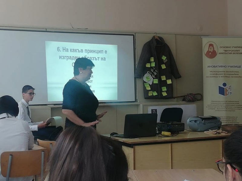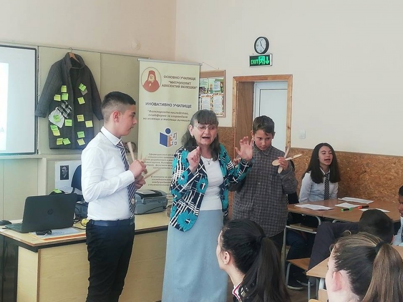 09.05.2019 Открит иновативен урок „Раждането на истинския човек или за добродетелите на добруджанската душа“ На 09.05.2019 г. по програма „Фолклорното наследство – платформа за изграждане на можещи и мислещи личности“ беше проведен открит иновативен урок, с учениците от VI „б“ клас на тема „Раждането на истинския човек или за добродетелите на добруджанската душа“, подготвен от Славея Петрунова и Даниела Георгиева.