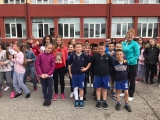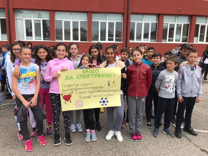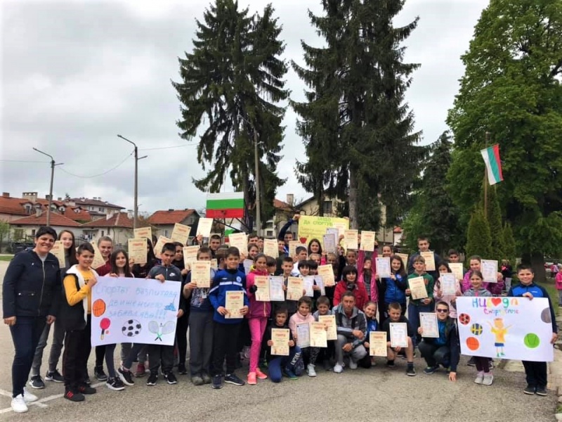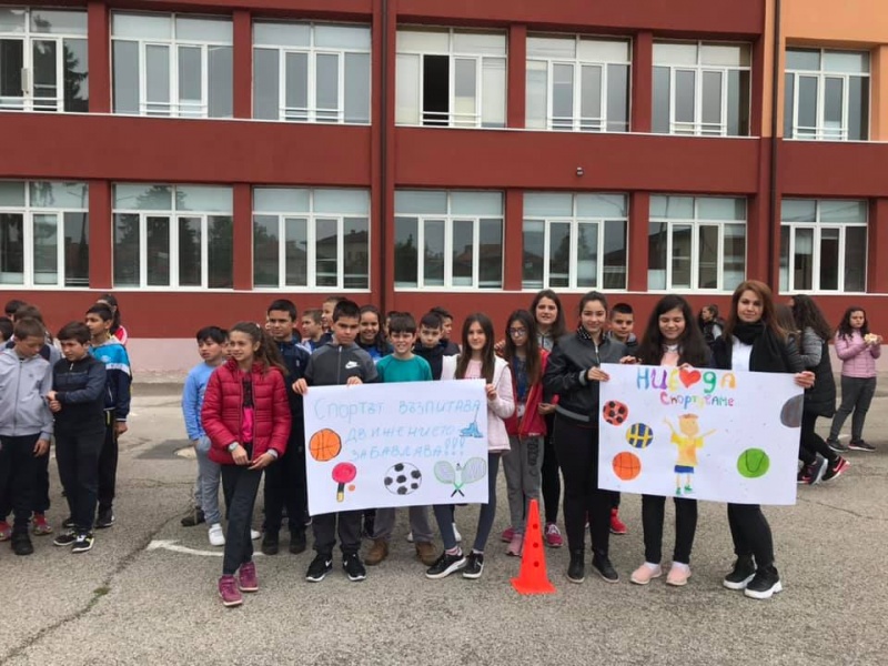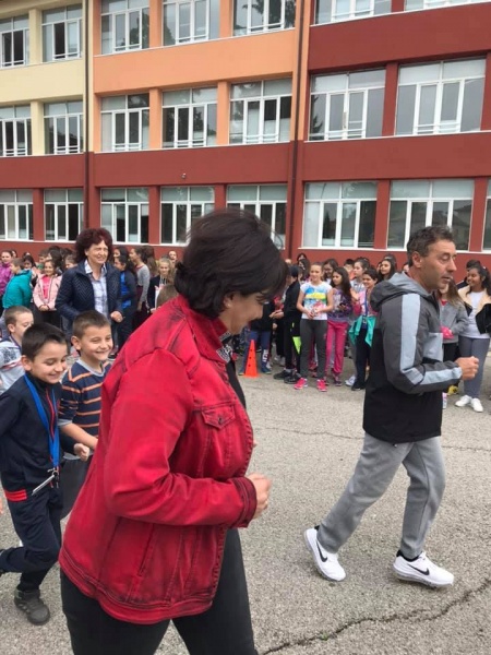 17.05.2019 17 май - Ден на българския спорт На 17 май празникът по повод Деня на българския спорт стартира в ОУ "Митрополит Авксентий Велешки" с общоучилищен крос, в който се включиха всички ученици с техните преподаватели и беше поведен от директора на училището Ирена Коцева и учителят по физкултура Васил Аджиков. Водещите Латиана и Божидар запознаха публиката с повече информация за празника и обобщиха спортните успехи на учениците от училището ни в различните области - баскетбол, футбол, волейбол, бадминтон, лека атлетика, БДП, както и в състезанията "Бързи, смели, ловки". Всички спортисти бяха наградени, а заслужени грамоти получиха и участниците в ТФ "Самодивче", които съвсем наскоро се завърнаха с трета награда от Пето фолклорно надиграване "Я тропнете, да тропнем", а през цялата учебна година многократно участваха в училищни и градски мероприятия.