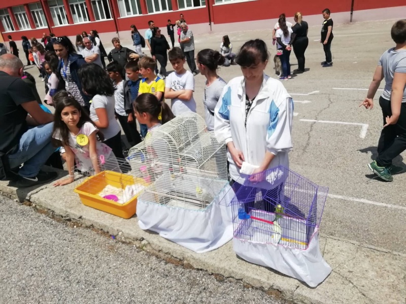 20.05.2019 Изложба на домашни любимци "Аз обичам животните" Изложба на домашни любимци "Аз обичам животните" се проведе за 9-та поредна година в ОУ "Митрополит Авксентий Велешки". Организира се под ръководството на Ирена Милчева, а домашните любимци бяха представени пред жури с председател д-р Владимир Топчийски и членове Емил Симитчийски – природолюбител и Георги Бакрачев – бивш ученик от училището.