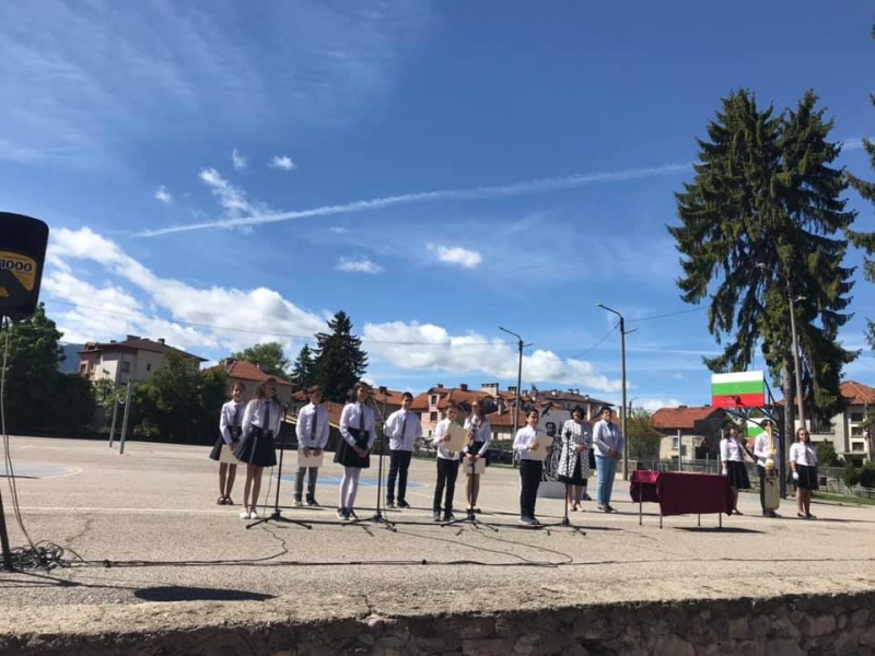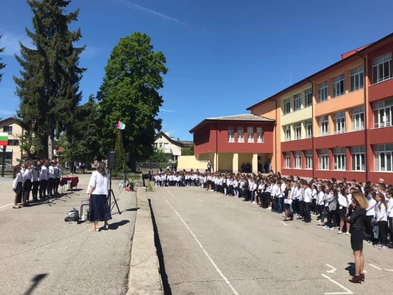 В учебния 23-ти май цялото училище присъства на церемонията по предаване на знамето от VII на VI клас. Изявени ученици бяха наградени със специална грамота за отлично представяне в олимпиади, състезания и конкурси, а до родителите им бяха изпратени благодарствени писма. Петокласници представиха рецитал за празника под ръководството на Аделина Кюнчарска. Участие взеха също вокалната група и фанфарният оркестър на Даниела Георгиева.