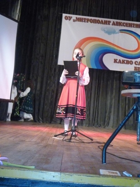 13.03.2015 Патронен празник на училището Водещи на мероприятието , което се проведе в читалище паметник " Отец пайсии " , бяха Лия Ангелова и Иван Гайдаров .