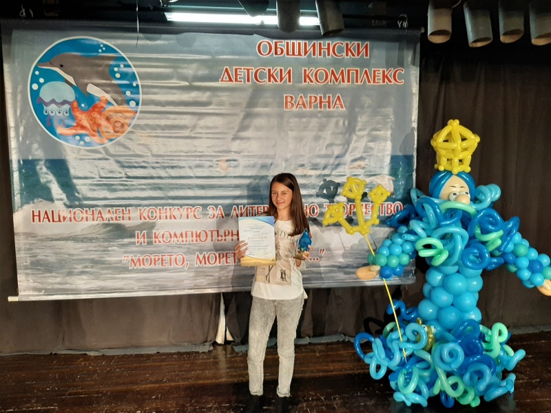 Габриела получи наградата си - красива статуетка, грамота и книги на официална церемония на сцената на Младежки дом, гр. Варна. Нейната рисунка бе отличена сред 165 творби на 159 участници от 24 населени места.