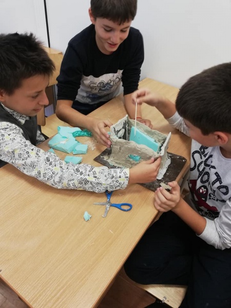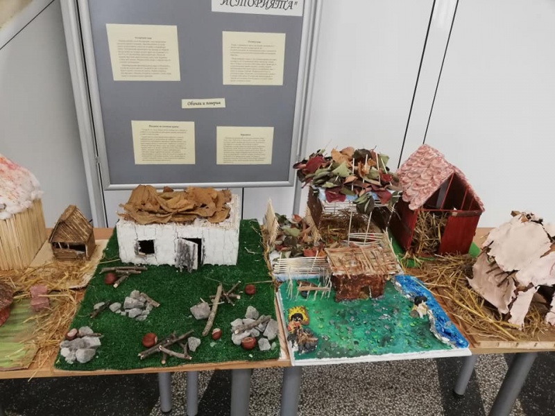 Учениците от клуб "Тайните на историята" с много ентусиазъм разкриха "тайните" техники за направата на малки неолитни къщи. Изработените от тях проекти, бяха изложени във фоайето на училището.