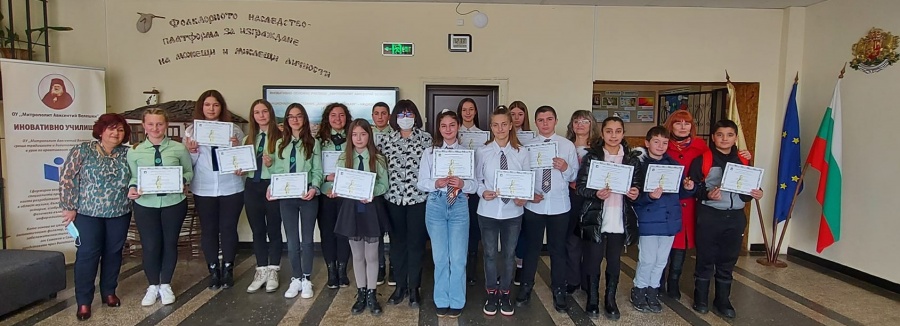 19.03.2022 Национално състезание "Ключът на музиката"-Национален кръгНа 19.03.2022г., се проведе Националният етап на състезанието „Ключът на музиката“. Участниците в страната са 473, разпределени в пет възрастови групи. С официална церемония, чрез видео връзка в залата на АМТИИ „Проф. Асен Диамандиев“ – Пловдив, състезанието откри ректорът на академията – проф. д-р Тони Шекерджиева-Новак и д-р Елена Търничкова – главен експерт в МОН. 20 ученици от Софийска област бяха допуснати до финалния кръг на Националното състезание- ученици от ОУ „Митрополит Авксентий Велешки“, гр. Самоков, ОУ „ Никола Йонков Вапцаров“, гр. Ботевград, ОУ „Васил Левски“, гр. Правец, ОУ „Св. Св. Кирил и Методий“, с. Челопеч. Директорът на ОУ„Митрополит Авксентий Велешки“ – г-жа Ирена Коцева приветства участниците от нашата област, достигнали до национален кръг и им връчи статуетки и грамоти за отлично представяне. Гордеем се с успехите на нашите ученици и усилията на техните преподаватели! |