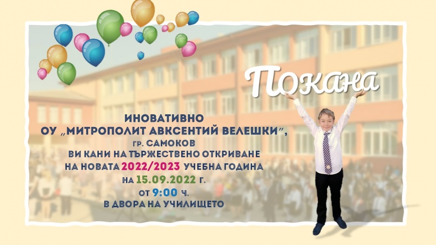 09.09.2022 Покана за откриване на новата учебна 2022/ 2023 година