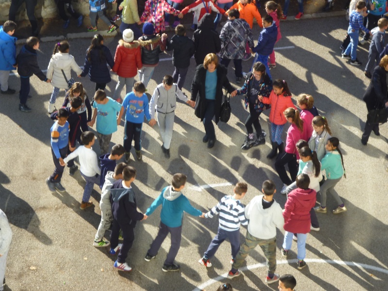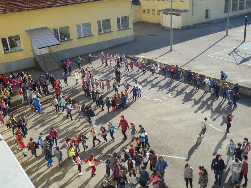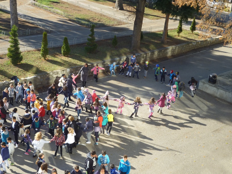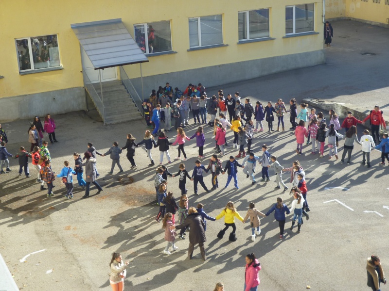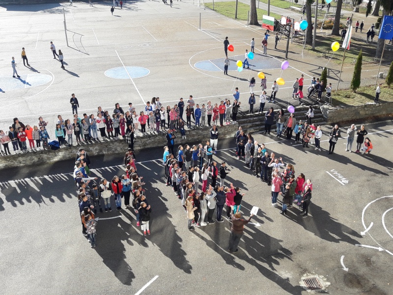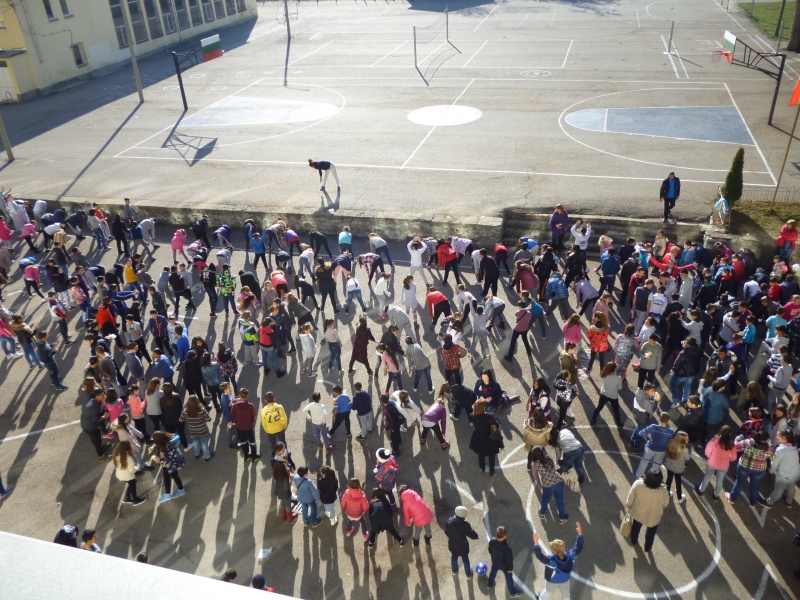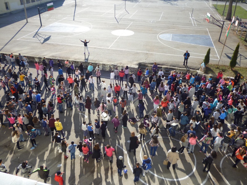 04.11.2016 „НЕ!” на насилието в училище На 04.11 в двора на ОУ „Митрополит Авксентий Велешки” по време на голямото междучасие се проведе флаш моб, с участие на петите класове, заедно с техните класни ръководители и учители по физическо възпитание. Учениците изписаха с телата си „НЕ!”, извикаха го гласно и пуснаха цветни балони, отново съпроводени с надписа „Не на насилието”.