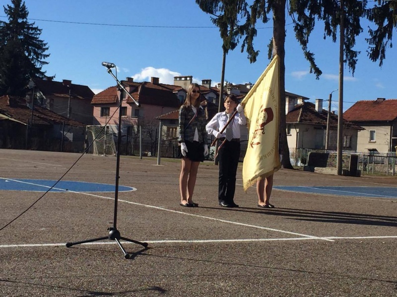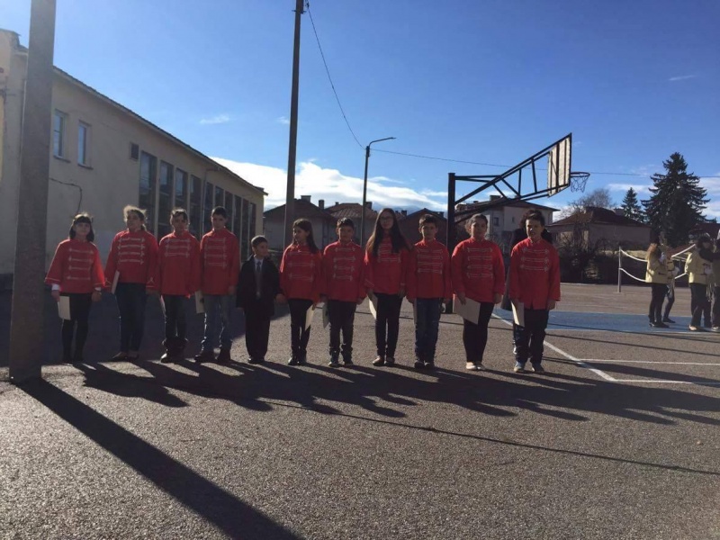 и носим в сърцата си гордия български дух" - всички ученици и гости получиха символа на единството.