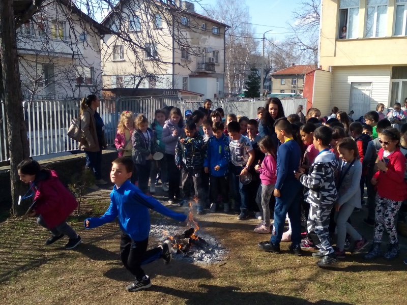 24.03.2017 ''Бягайте, змии и гущери, утре е Благовец!'' Традицията беше спазена и за поредна година учениците от ОУ ''Митрополит Авксентий Велешки'' изгониха ''змиите и гущерите''. В очакване на Благовец прескочиха огньове за здраве и обявиха настъпването на пролетта.