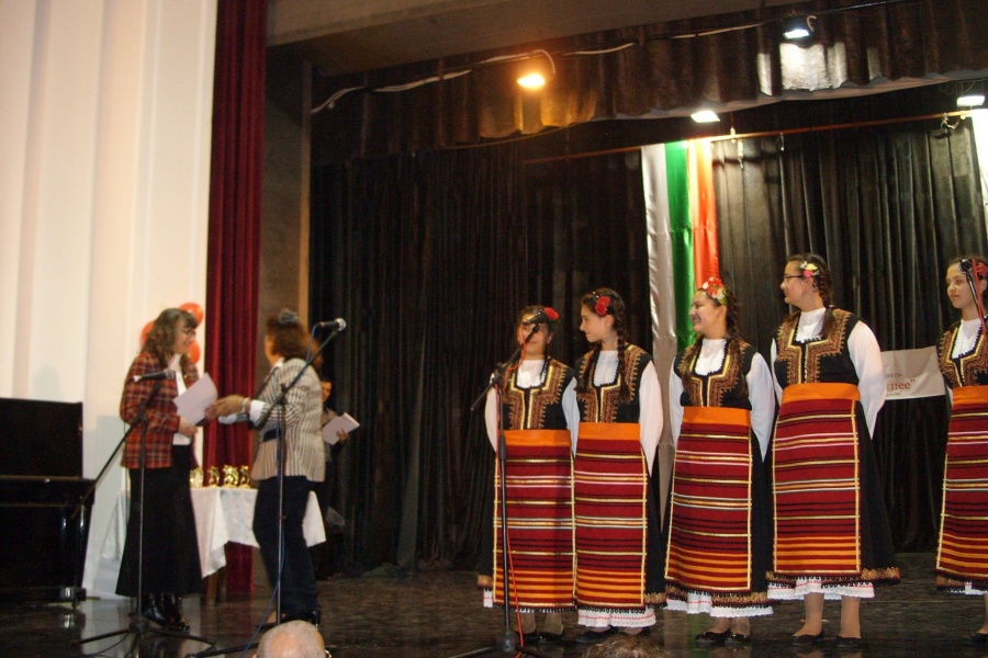 11.11.2017 Участие на ДВГ "Медени звънчета'' в гала-концерта на Национален конкурс "Пиленце пее" Участие в гала концерта на Национален конкурс "Пиленце пее" на ДВГ "Медени звънчета" и връчване на златен медал от Светла Караджова.
