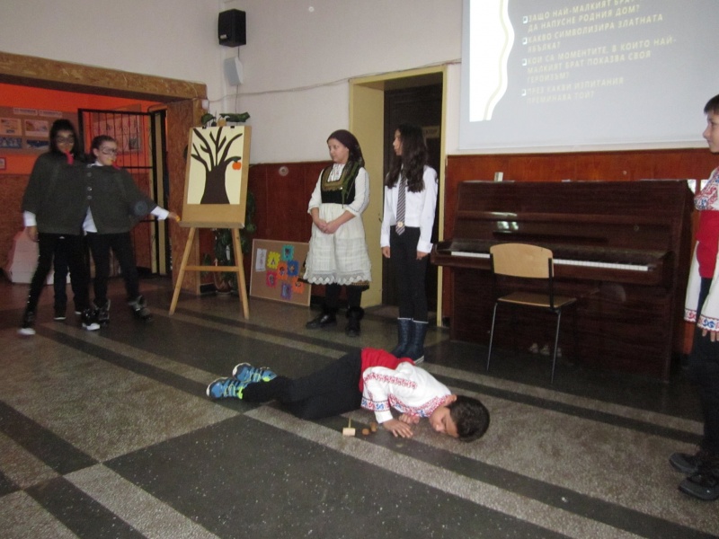Екип от учители – Славея Петрунова, преподавател по български език и литература, Даниела Георгиева – музика, Ралица Струмина – физическо възпитание и спорт, показаха, че работата в екип и иновативните подходи могат да направят фолклорното наследство интересно и актуално. Откритият урок по литература <<Вълшебното в приказката „Тримата братя и златната ябълка“>> с учениците от 5„б“ и 5„в“ клас доказва, че междупредметните връзки и интерактивните методи на обучение активизират учениците и провокират творческия им потенциал, а възприемането на учебния материал – приятно и забавно.