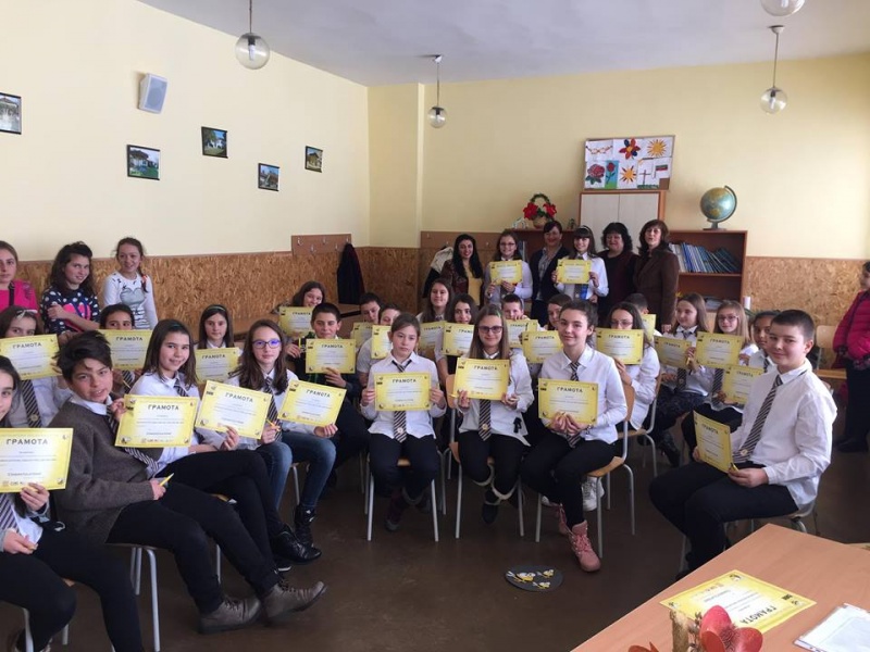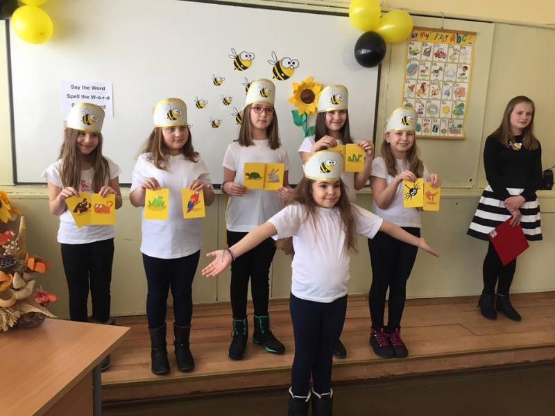 26.02.2018 Състезание по правопис Spelling Bee Състезание по правопис на английски език Spelling Bee се проведе на 26.02.2018 г. в ОУ "Митрополит Авксентий Велешки". Забавна английска песничка, изпълнена от второкласници, даде старт на състезанието. Подготовката и участието на състезателите от четвърти, пети, шести и седми клас стимулира интерес към английския език, помага им да подобрят правописа и да обогатят речниковия си запас. Победител в училищното състезание е Радина Огнянова от 7 клас, а нейна подгласничка стана Моника Попова от шести клас. Те се класират за регионалното състезание.